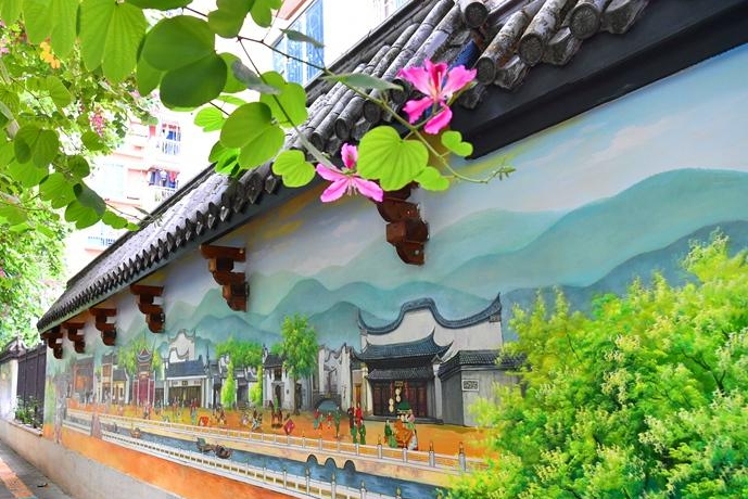 近日,台江茶亭街道的粉干巷“上新”,精心创作的大型墙体彩绘让原本单调的墙面化身为承载历史的“文化长廊”。