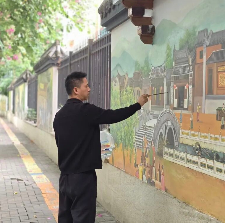 现场看到,画师正拿着蘸满颜料的画笔,在墙绘上细致打磨,轻轻几笔一棵大树便已枝繁叶茂。这些彩绘墙是茶亭街道引入福建师大协和学院林小燕青年创业人才团队,将茶亭的历史文化底蕴浓缩成一幅幅鲜活的画面。