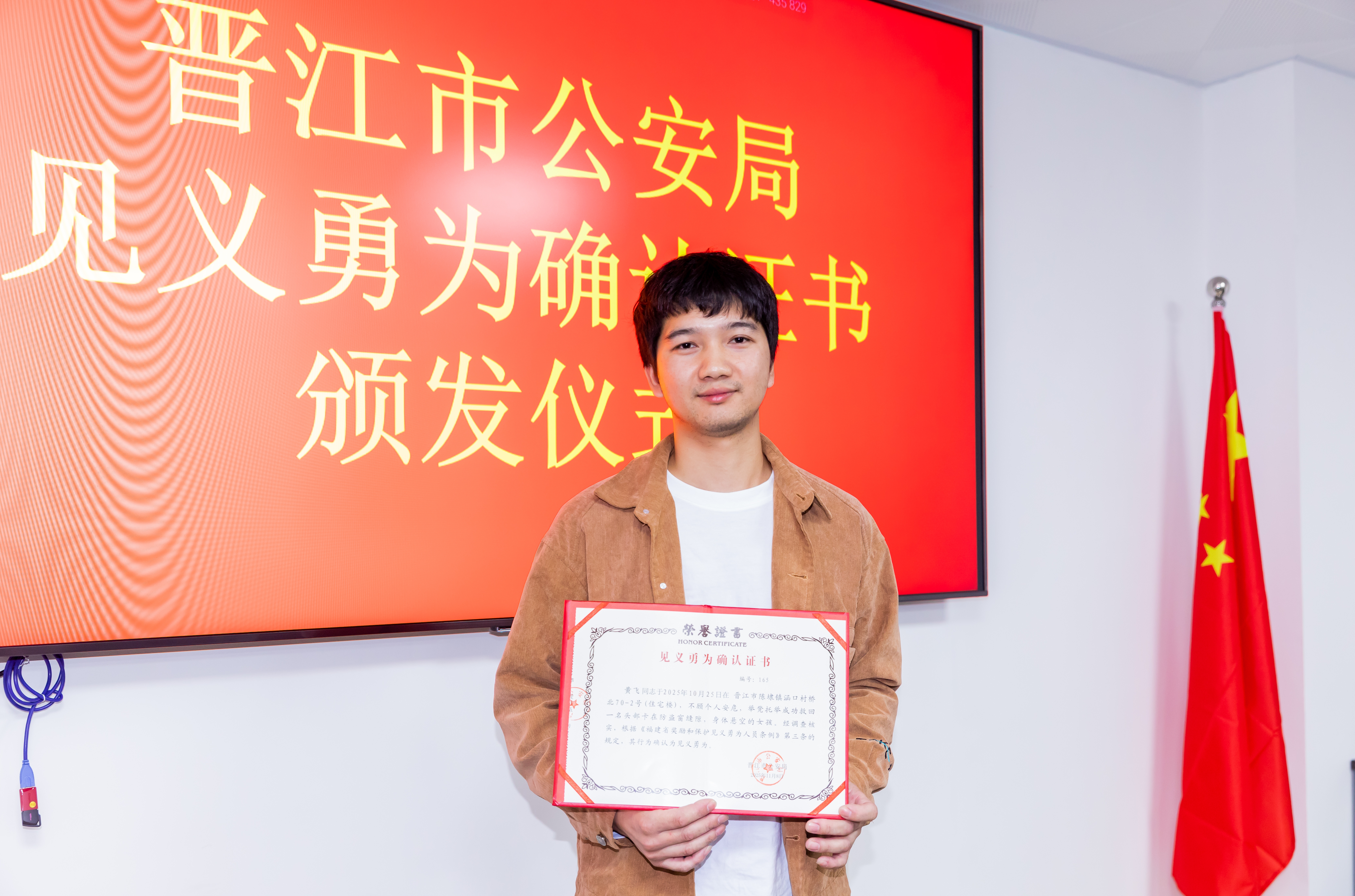 “既然遇到了,肯定要帮!当时没想那么多,只想着一定要把人救下来。”证书颁发仪式现场,黄飞对于此次获评“见义勇为”,既惊喜又荣幸,“晋江是一座特别有爱的城市,这份荣誉是鼓励也是责任,希望更多人能在别人需要的时候勇敢伸出援手。”