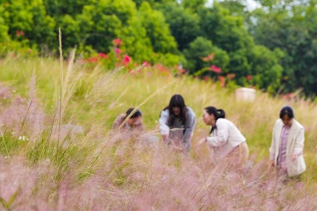 乌龙江湿地公园的粉黛乱子草花海,吸引众多市民前来打卡。包华 摄
