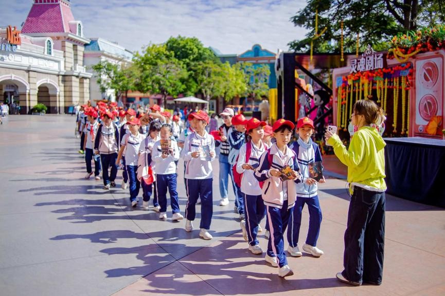 当日10时许,身着校服的学生抵达方特梦幻王国,在三大核心项目及特色体验中开启“科技+知识”探索:“飞越极限”以“虚拟航班”带学生穿越世界名胜;“生命之光”通过3D技术展现地球诞生、恐龙演化等生命历程;“决战金山寺”则用船行体验+水幕电影重现《白蛇传》。此外,“宇宙博览”“秦陵历险”“聊斋” 等项目,进一步让学生在趣味体验中收获科普知识与文化认同。对于美林小学的许多外来工子女而言,此次沉浸式科技之旅不仅是知识的拓展,更是一次难忘的关怀与陪伴,有效激发了他们对科学探索的持久兴趣。