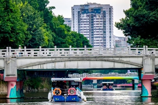 晋安河—光明港航线上的彩绘桥梁成为内河游新地标。记者 陈暖 摄