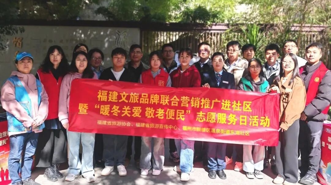 11月20日,由福建省旅游协会、福建省旅游宣传中心、福州市鼓楼区温泉街道东湖社区主办的福建文旅品牌联合营销推广进社区暨“暖冬关爱 敬老便民”志愿服务日活动在东湖社区开展。