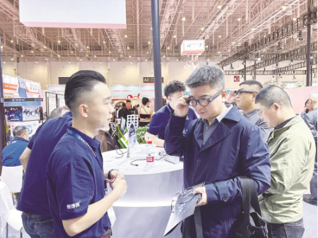 戴上眼镜,轻触镜框滚轮,精彩的电影画面在视野内缓缓展开,耳侧同步传来声音,观影体验感拉满……昨日,在臣博视展台前,新品维耀X智能眼镜吸引了众多来往客商驻足试戴,不少观众戴上眼镜后发出“像在看一块悬浮屏幕”的感叹。