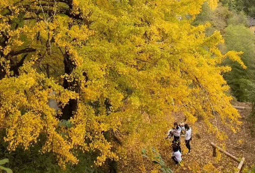 泉州市德化县的丁荣自然村拥有27株五百多年树龄的古银杏树,是目前泉州市发现的唯一一处古银杏群。因地理位置特殊,丁荣自然村数百年来不被外人侵扰,得以保留原始的自然风貌。每到晚秋初冬时节,一棵棵金黄的银杏点缀在成片的阔叶林或竹海之中,与闽南特色的古民居共同呈现纯朴的乡野风情。风起,叶落,遍地金黄,叠翠流金,绝美如画。