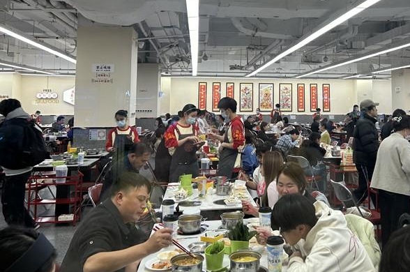 火锅店里人声鼎沸,热闹非凡。记者 吴桦真 摄
