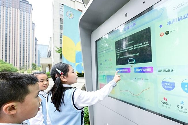 位于岳峰镇的晋安榕博小学内,孩子们兴奋地体验智慧跑道。记者 石美祥 摄