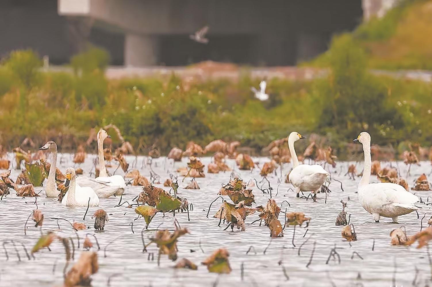 作为东亚—澳大利西亚候鸟迁飞通道的关键节点,入秋以来,石狮湿地公园、泉州湾水头外线“生态贵客”不断到访。泉州市观鸟学会会长吴轲朝分析说,小天鹅到访数量不断增加,原因有两个方面:一是气候变化对原有越冬地环境的改变,让小天鹅寻找新的越冬地;另一方面,泉州湾近年来通过互花米草除治,为候鸟提供了更好的栖息和觅食条件。其中,石狮湿地公园的水生植物、昆虫和螺类,为小天鹅迁徙越冬提供了丰富的食物。