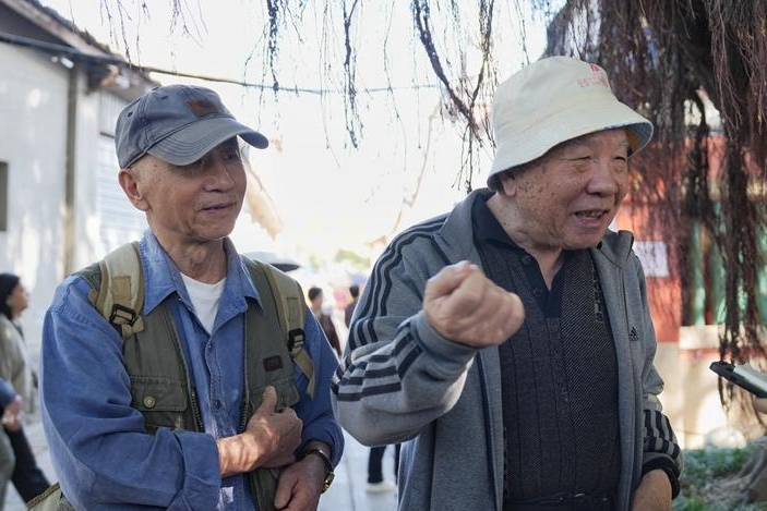 林功浩(左)、李岩生(右)前往吴石故居缅怀先烈。芦懿 摄