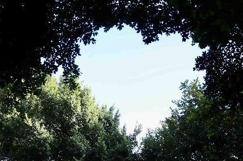 树叶之间自然构成一个心形