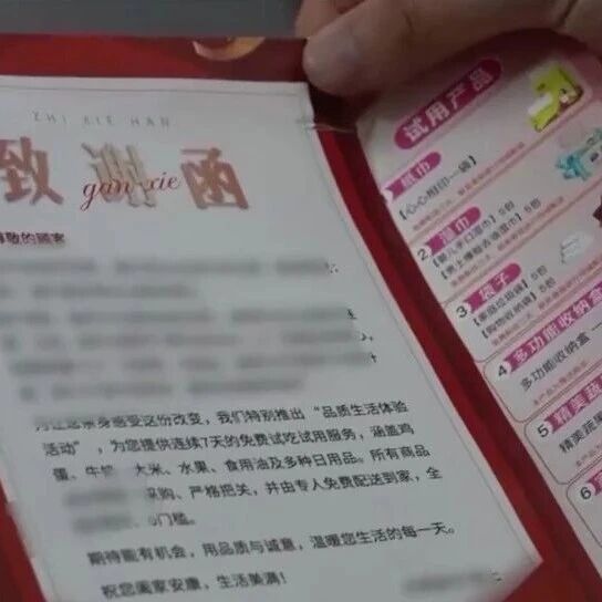 在河南郑州,民警展示了诈骗分子仿冒某知名超市发放的试用卡套装,上面写着:我们特别推出“品质生活体验活动”,为您提供连续7天的免费试吃试用服务,涵盖鸡蛋、牛奶、大米、水果、食用油及多种日用品,并由专人免费配送到家,全程零费用、零门槛。