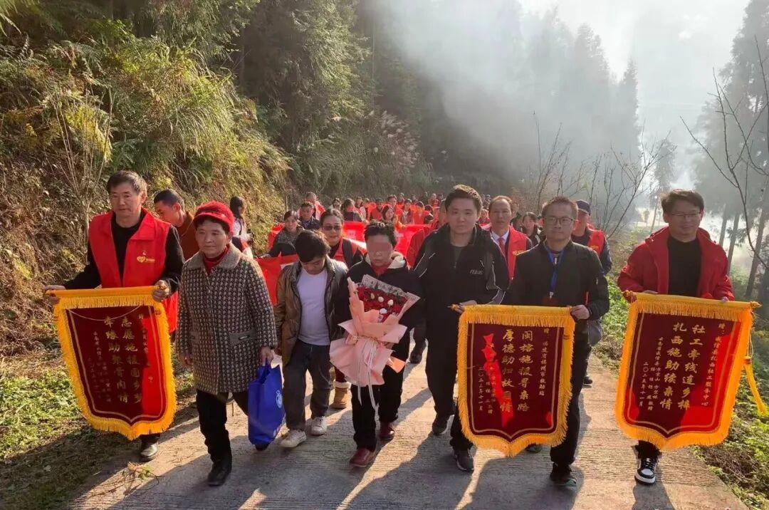 “欢迎回家!欢迎回家!”11月25日下午,在云南省昭通市威信县双河乡,礼花腾空而起。在福州市和昭通市威信县救助站工作人员、志愿者及村民的簇拥下,在写满祝福的锦旗和喜庆横幅的环绕中,方某芬一步步走完最后约2公里的回家路。