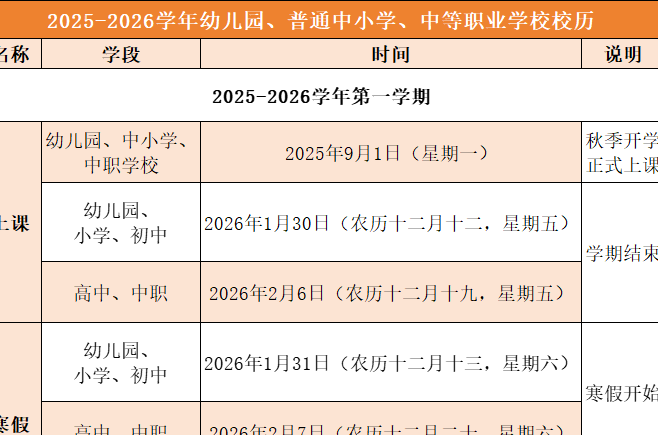 根据此前福州市教育局下发的通知,2025年秋季学期于2026年1月30日结束,1月31日起放寒假。2026年春季学期于2月26日正式上课。寒假时间为26天。