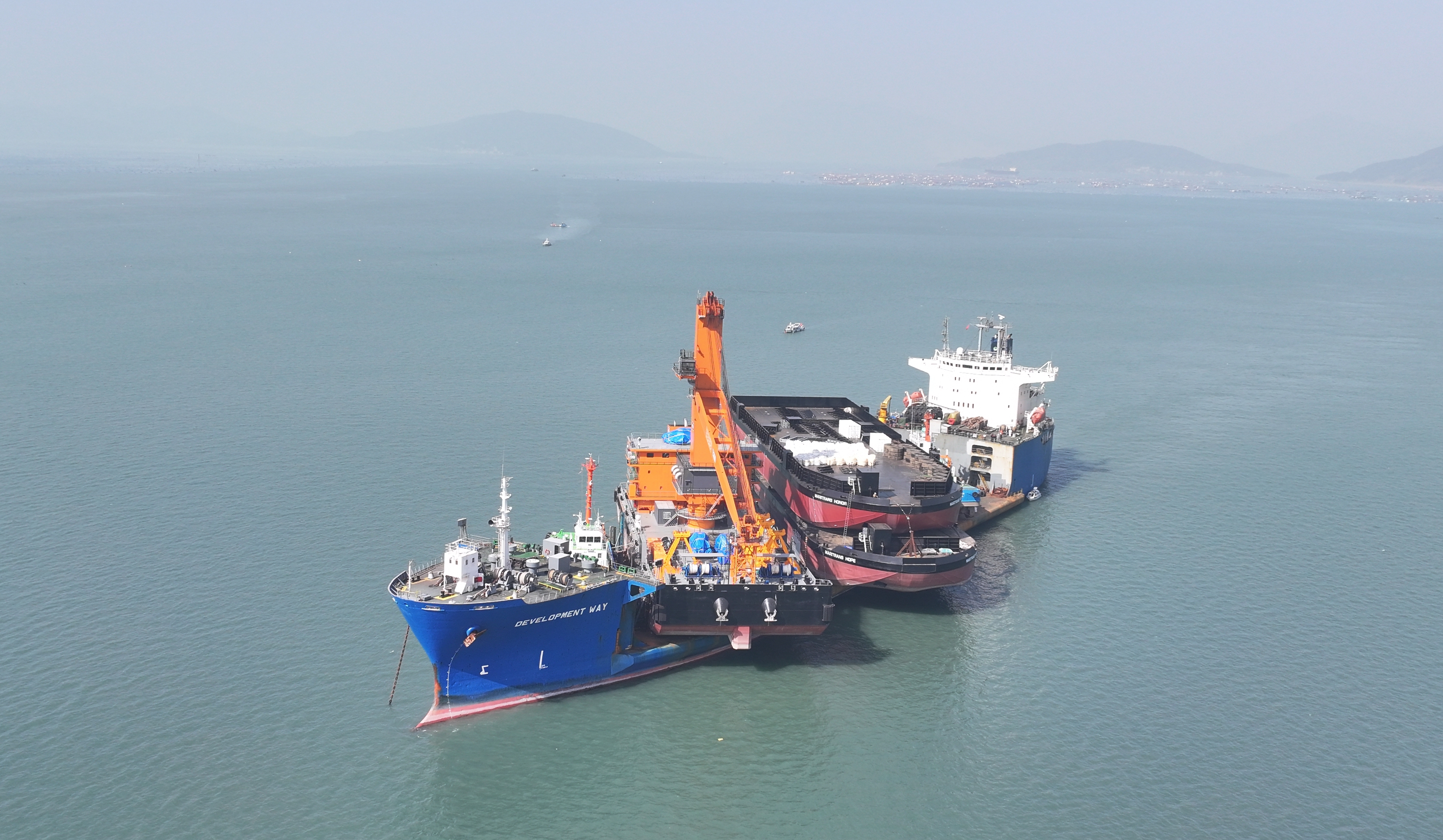 11月27日,在宁德边检站的高效保障下,巴拿马籍“发展之路”半潜船顺利完成5艘“宁德造”工程船舶及相关设备装载作业,从宁德港缓缓启航,驶往几内亚。