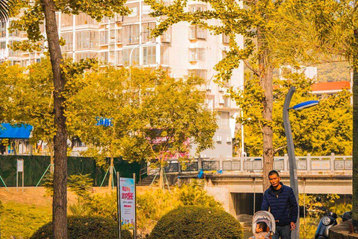 而在银杏休憩公园,370岁“银杏王”也换上“新装”,清初顺治年间栽下的古树至今仍枝繁叶茂,金黄树冠如巨伞,把小园裹在暖意里。
