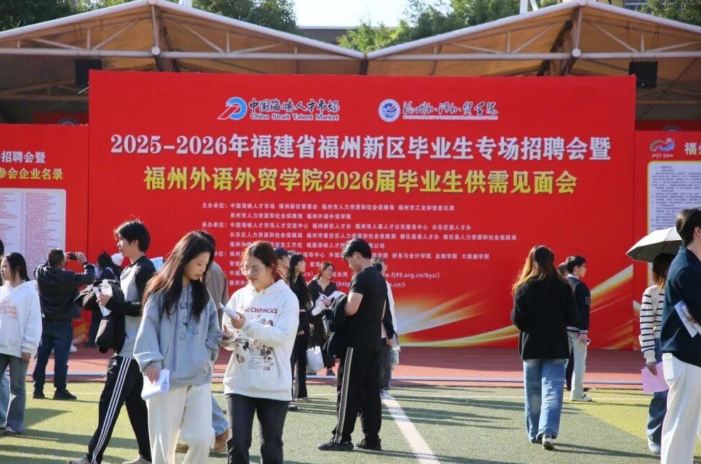 11月25日,2025-2026年福建省福州新区毕业生专场招聘会暨福州外语外贸学院2026届毕业生供需见面会在福州外语外贸学院田径场举办,现场供需两旺,暖意满满,为2026届毕业生搭建起高效对接的就业桥梁。