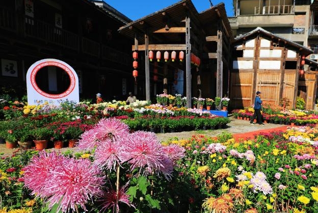 26日,漫步宁德市蕉城区中南路的明代建筑绣花楼内,浓郁的菊香扑鼻而来,菊花与古建筑相映成趣,一幅古朴、典雅、清新的自然画卷徐徐展开,为初冬的蕉城增添了一抹浪漫亮色。