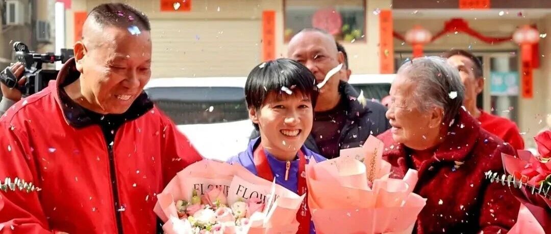 交流活动结束后,陈惠颖随即返回位于江南镇的亲属家中,沿途庆贺的横幅在阳光下格外醒目,道路两旁早已站满了翘首以盼的父老乡亲,现场鞭炮齐鸣、掌声不断。陈惠颖佩戴着金牌走下车辆,热情的乡亲们立刻簇拥而上,与她握手、拥抱、合影,夺冠的喜悦感染着在场的每一个人。