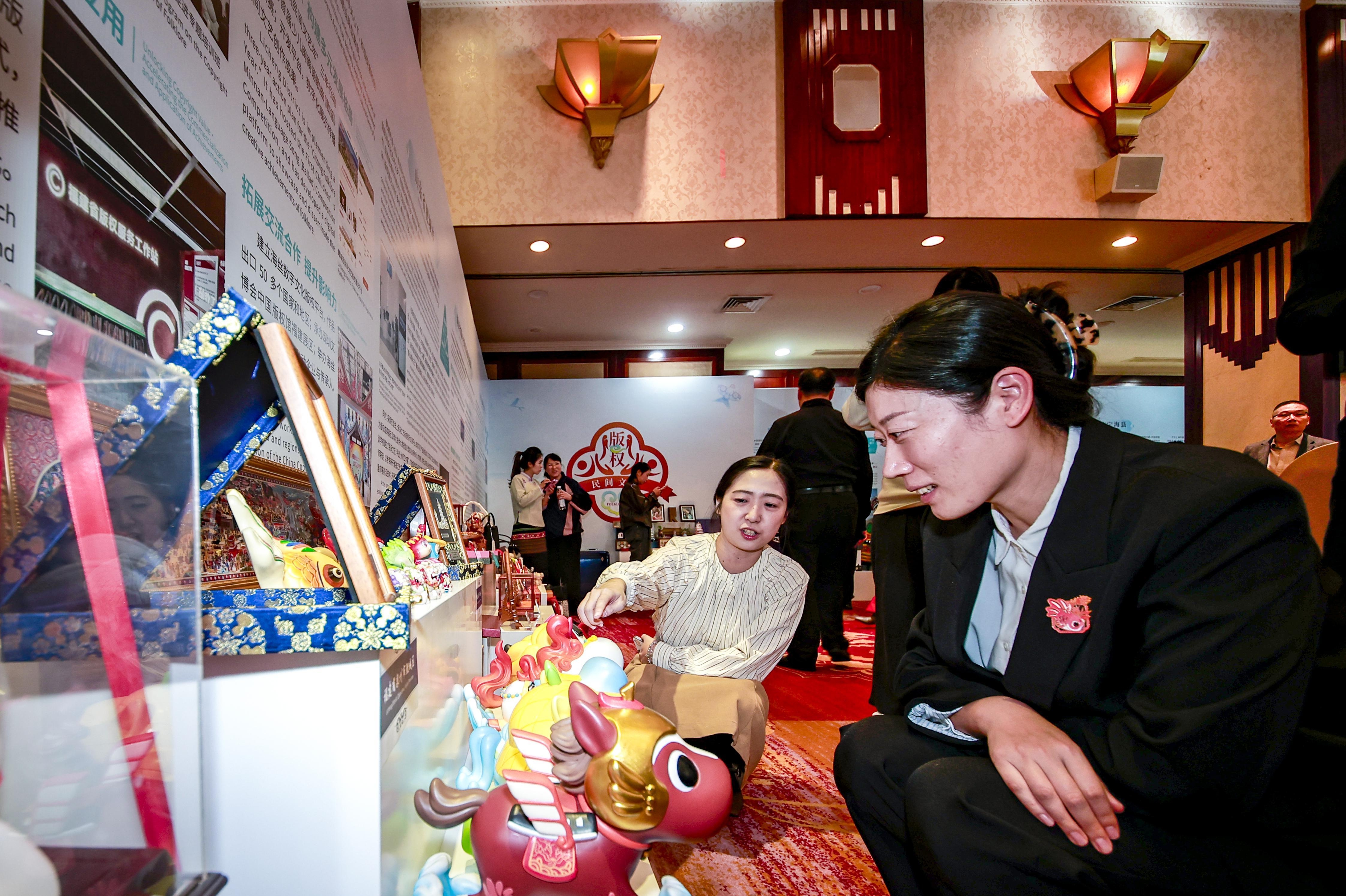 与会嘉宾在会场内观赏泉州民间文艺作品(林劲峰 摄)