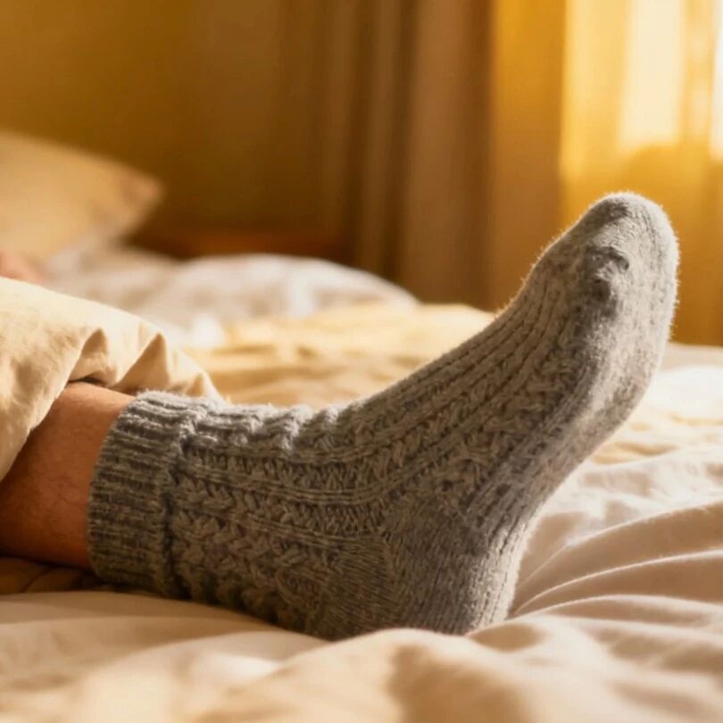 当双脚冰冷时,不能很好地进行散热,核心温度因此受到影响。一旦体温节律紊乱,人就可能睡不好。随着年龄增长,人体调节体温的能力可能会下降,穿袜子可以帮助保持舒适和温暖的睡眠环境。