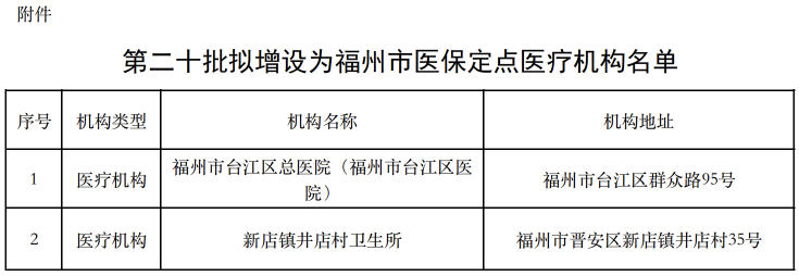关于新增福州市台江区总医院(福州市台江区医院)等2家医疗机构为福州市医保定点医疗机构的公示