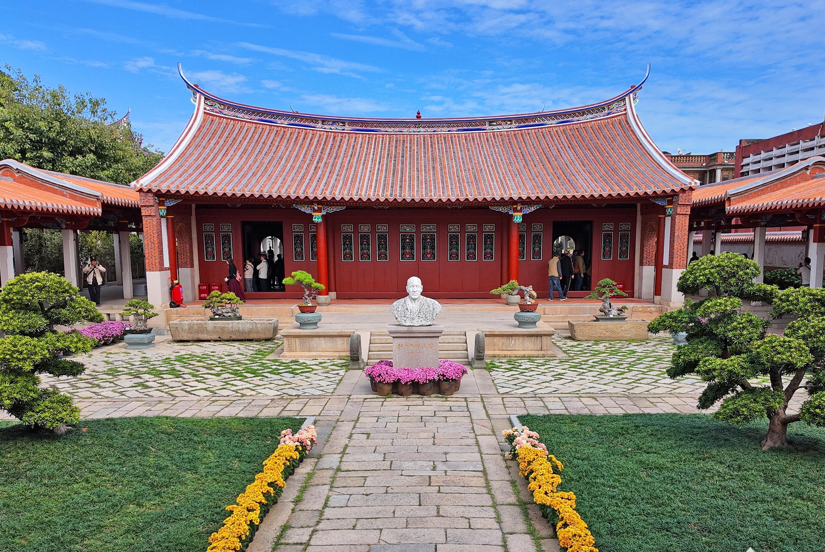 纪念馆藏于泉州大开元寺准提禅林,3000平方米的院落里,每一处细节都藏着巧思。此次改造,依照“素雅新静”的理念进行,共设有生平馆、遗物馆、传承馆、真迹馆、纪事馆、文艺馆六大展馆。其中,前四个展馆沿着中轴线分布于三个大殿,另两个展馆则位于两侧连廊。