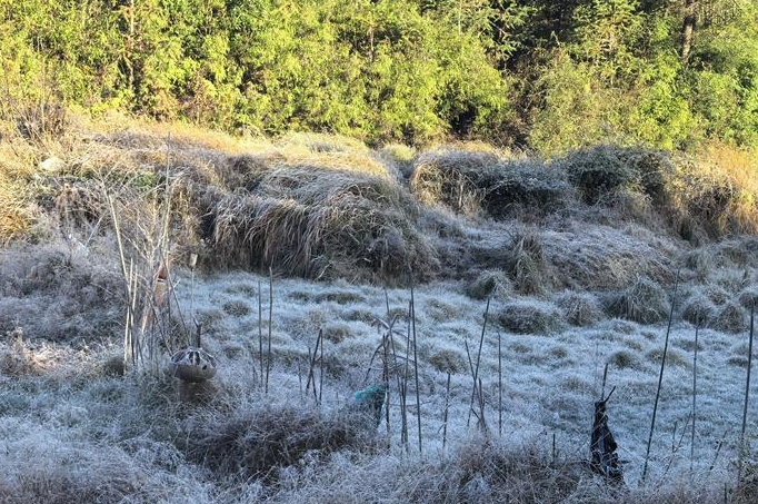 29日早上,闽侯县大湖乡岭头村结霜了!记者29日早晨从福州市气象台获悉,晋安北部、永泰、闽清、闽侯、罗源西部等高海拔地区在当天早晨接近0℃,部分有霜。