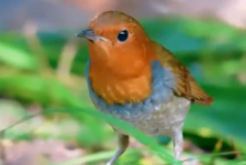这两天,还有一只歌鸲出现在虎头山公园,它就是颜色更艳丽的日本歌鸲。它头部和颈部都是鲜亮的橙色,腹部则是灰白色,“高颜值”也吸引了不少外地观鸟爱好者前往守候拍摄。