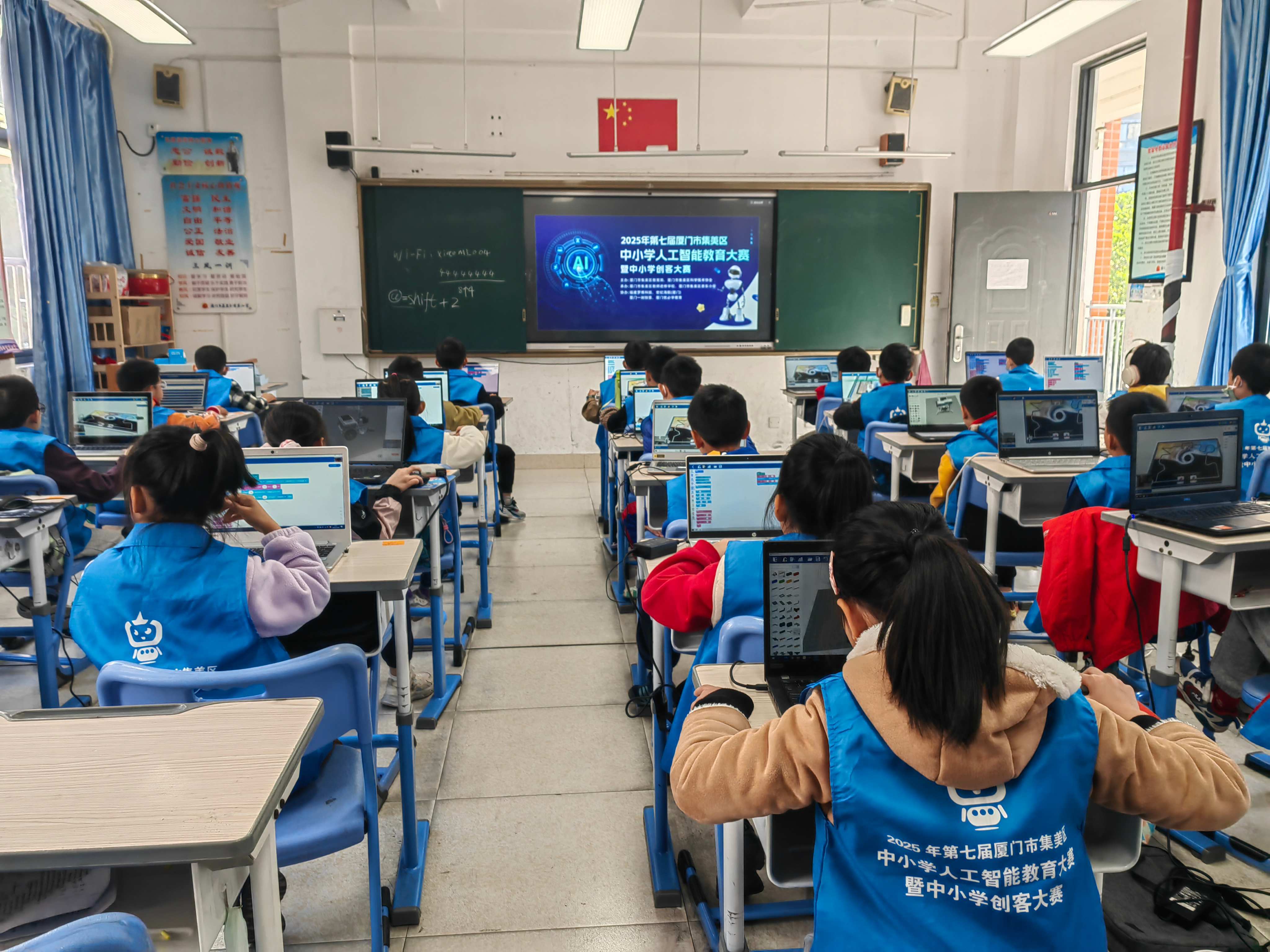 小小创客比拼脑力。11月29日,2025年第七届集美区中小学人工智能教育大赛(暨中小学创客大赛)在厦门市集美区杏东小学举行,来自全区44所中小学的701队925名选手参与其中。