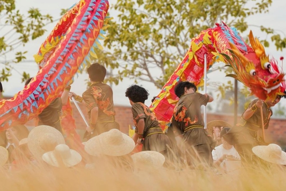 伴随着舞龙队《见龙在田》的恢宏表演,活动在田洋九九稻田正式拉开帷幕。池店镇镇长蔡清渠在致辞中表示:“我们以稻田为舞台,以丰收为主题,致敬农耕文明,传递土地温度。这是池店镇探索‘文化IP化、产业融合化、体验场景化’乡村振兴路径的一次生动实践。”随后进行的非遗展演环节,高甲戏的“扎靠”武将威武登场,经典丑戏《公子游》引得现场笑声不断;晋江市掌中木偶艺术保护传承中心的《掌中集萃》则展现了“方寸舞台,指尖乾坤”的艺术魅力。两项泉州非遗艺术在稻浪环绕的自然舞台上焕发全新活力,实现了传统文化与当代乡村生活的深度对话。