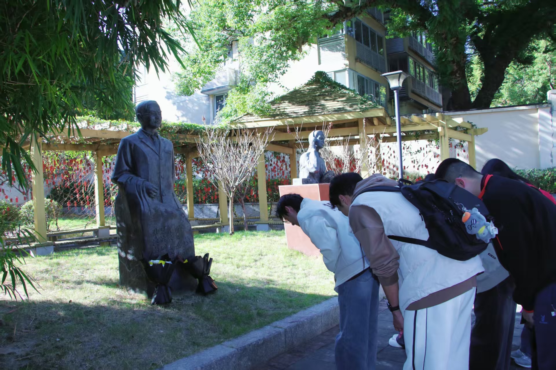 在格致中学学生宣讲的引领下,学子们怀着肃穆之心来到校园英烈园中的吴石将军雕像前,用最质朴的方式向为国家统一与民族复兴不懈奋斗的革命先辈致以深切缅怀。