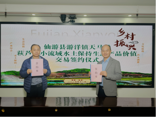 福建日报·新福建客户端 12月2日讯(记者 陈盛钟)近日,莆田市首单水土保持生态产品价值转化交易在仙游县签约,游洋镇天马村民委员会出让萩芦溪小流域天马村段水土保持生态产品的3年经营权15.12万元。这是一次生态资源的市场化定价,也是仙游县践行“两山理论”、推动水土保持生态产品价值实现的生动实践,标志着该县在水土流失治理与生态乡村振兴融合发展上迈出关键一步。