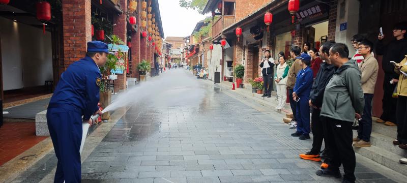 当天下午,消防安全现场演练在莆田兴化府历史文化街区有序开展,全市住建系统相关工作人员及历史文化街区管理单位人员共同参与实战训练。演练现场,陈森详细介绍了消控室的职能定位、设备组成、值班值守要求及应急处置流程,强调其作为消防安全“神经中枢”在火灾预警、指挥调度中的关键作用。随后,他聚焦木结构建筑消防安全特点,讲解隐患排查核心内容,并通过模拟建筑施工现场电焊焊渣引燃木屑的火灾隐患场景,直观阐释动火作业的消防安全防护要点与预防措施。