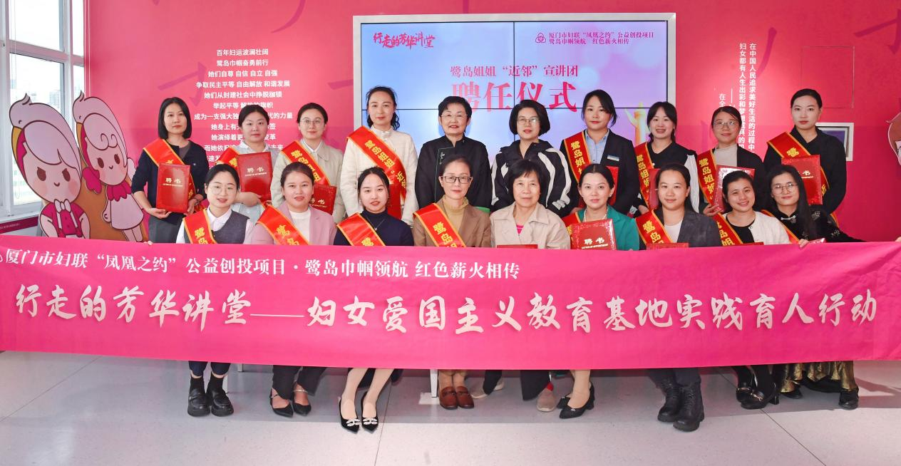厦门市妇联“凤凰之约”公益创投项目鹭岛巾帼领航 红色薪火相传——“行走的芳华讲堂”妇女爱国主义教育基地实践育人行项目旨在聚焦新时代妇女思想政治引领,融合省级主流媒体资源优势,串联全市各级妇女爱国主义教育基地等,创新打造青少年共同参与、沉浸式互动体验、多元联动赋能的巾帼大宣讲机制。系列活动将通过宣讲“+小记者”“+数字智能”“+志愿服务”“+国防教育”“+亲子研学”等多种形式,探索推动妇女思想政治引领工作与社会治理、志愿服务、数字智能等领域的融合发展,培育壮大一支多元化、专业化的巾帼宣讲队伍,持续提升鹭岛姐姐“近邻”宣讲品牌的传播力和影响力,筑牢与党同心同行的巾帼信仰之基。