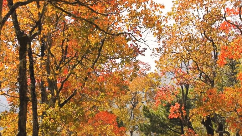 初冬时节,福建省寿宁县大安乡的公路旁,乌桕斑斓婀娜,艳若丹霞,在云淡风轻的旷野中,充满了独特的乡间味道。阳光穿过云隙,斑驳洒落,每一片乌桕叶都似自然亲手调色:叶缘鎏金,叶心灼橙,叶尖凝红,恍若霞光栖枝,静谧而生动。