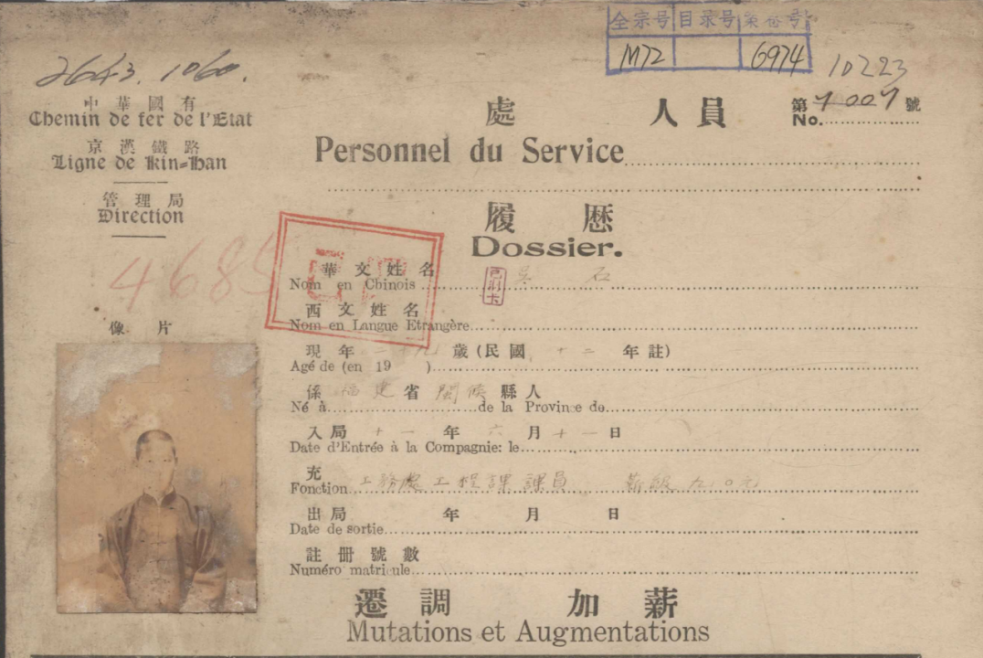 在目前已有史料中,吴石早年在京汉铁路管理局工作的经历未见提及,该履历表可以填补有关空白。