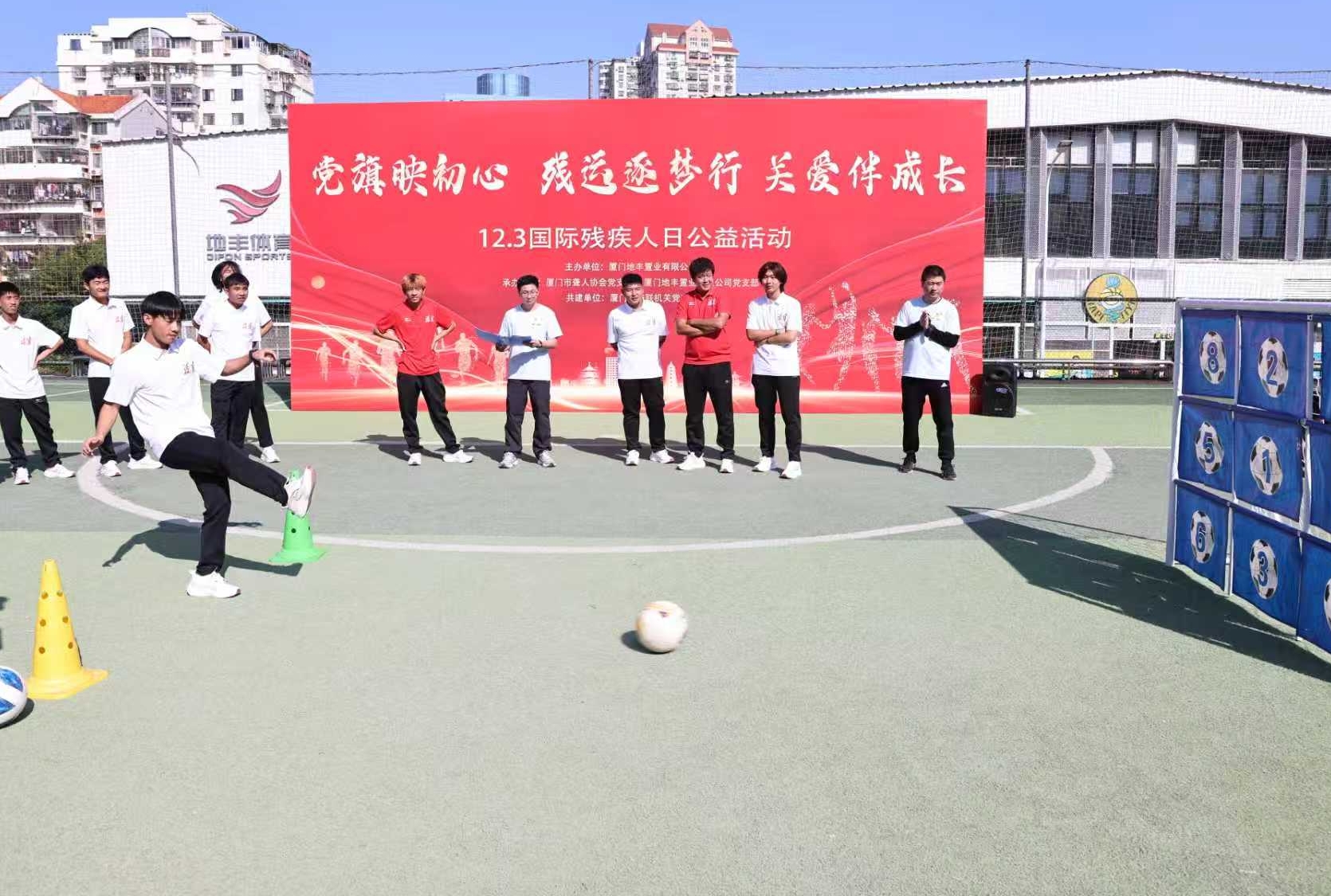 福建日报·新福建客户端12月2日讯 (记者 邓婕 通讯员 周晓晨)2日,国际残疾人日公益活动在厦门地丰体育文化中心足球场拉开序幕。此次活动由厦门市残联机关党支部与市聋协党支部共建,厦门地丰置业有限公司主办。