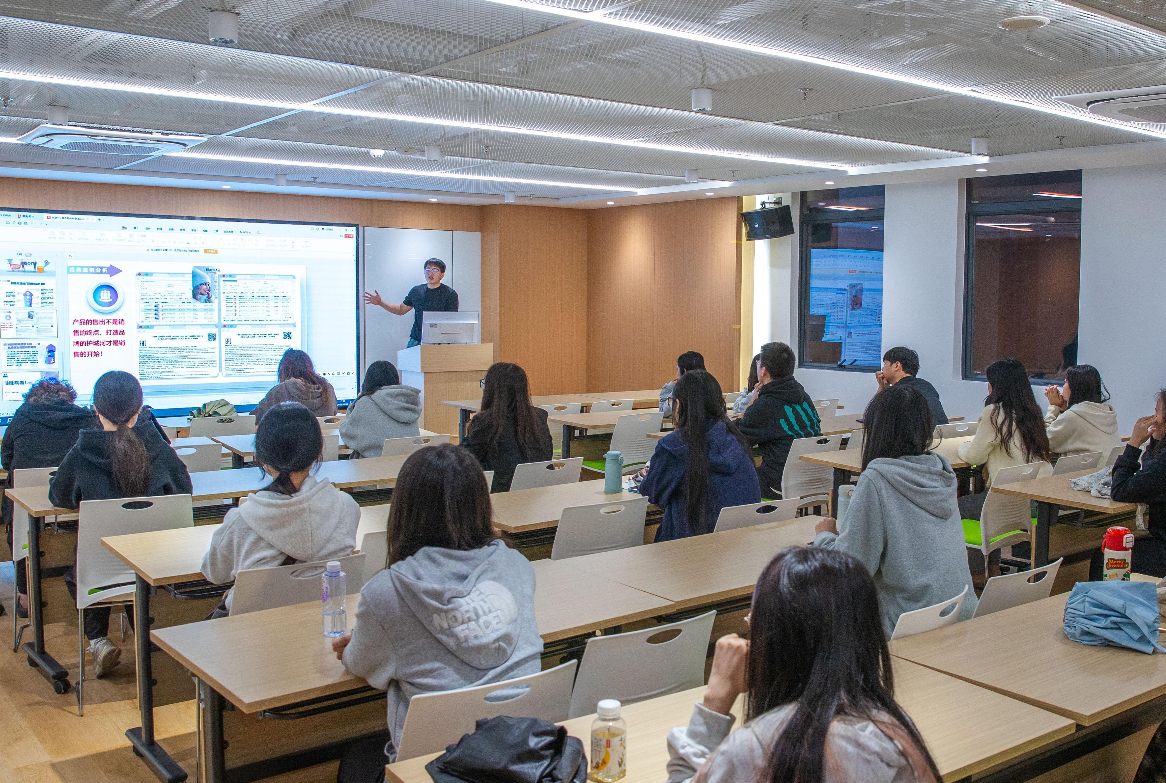 近日,在丰泽区环华侨大学电商生态圈的“全球卖家孵化中心”里,一群年轻人在跨境电商产教实训基地里听讲。该基地通过引入专业化跨境电商培训机构和经验丰富的电商行业讲师,对接华侨大学等高校资源,开展学院人才实训、专业技能培训,为全市培养跨境电商实战型人才。(泉州晚报社融媒体记者 陈林森 陈起拓 通讯员 王志超 摄)