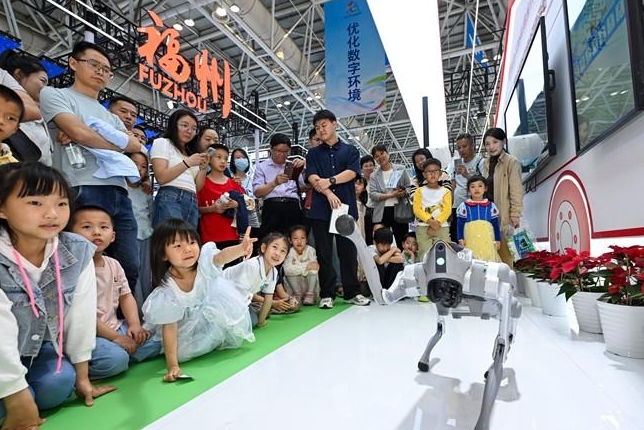 第八届数字中国建设峰会体验区,机器人展示吸引了众多观众的目光(资料图)。记者 池远 摄