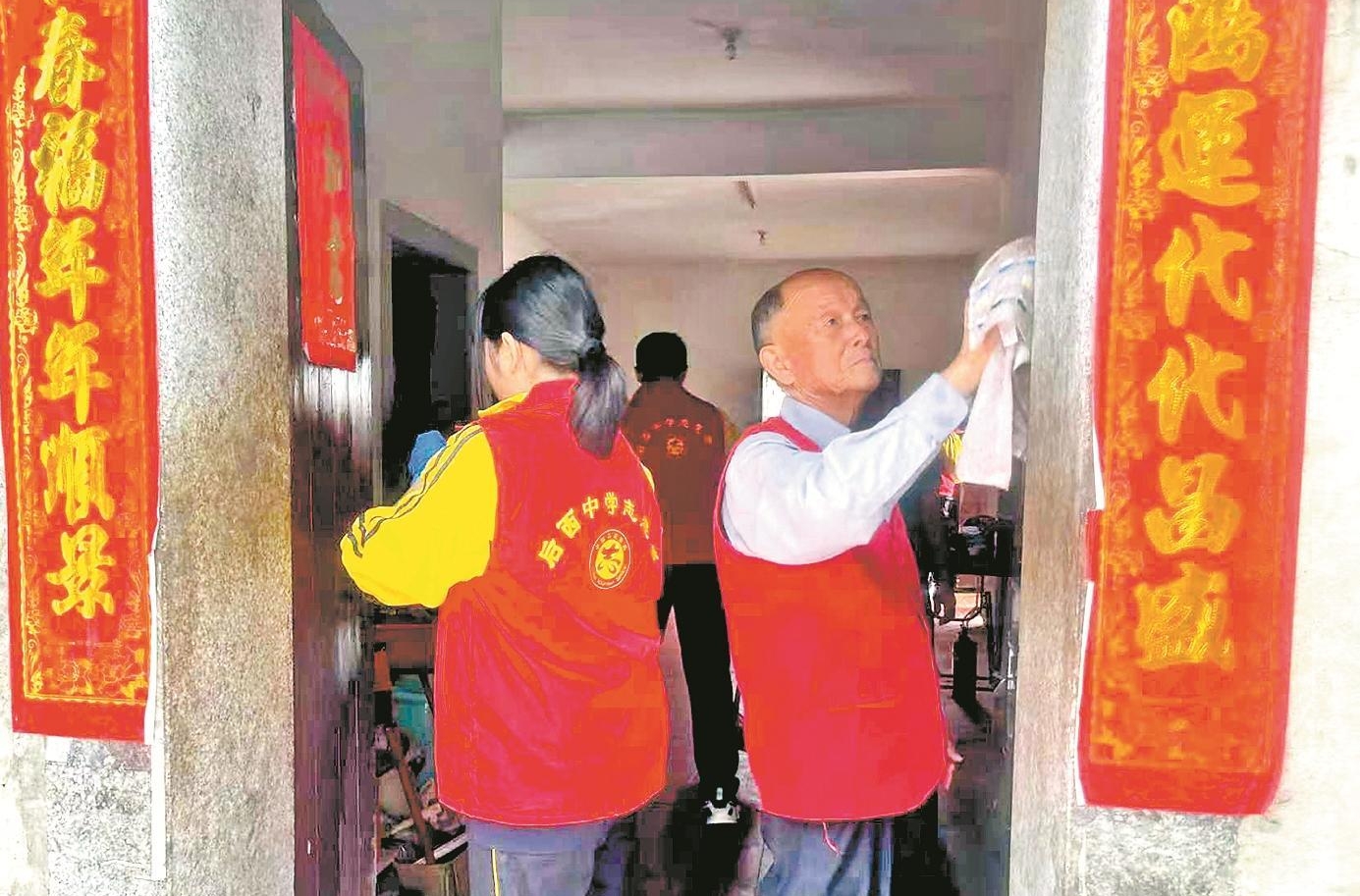 我市志愿服务事业得到社会各界的积极支持,图为老党员陈欠水参加志愿服务。