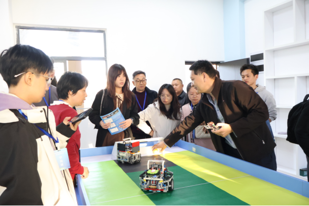 为期两天的交流会内容丰富、形式多样,涵盖主题分享、实操演练、成果展示三大板块,全方位呈现AI赋能科学教育的创新教学实践。福州八中三江口校区的特色场地化身为“科创教研实践基地”:在人工智能实验室里,科技教师们基于鸿蒙系统进行编程设计,进行水中机器人实战演练;在体育馆内,无人机智能飞行实操项目精彩上演,师生沉浸式探索科技教育融合路径。教师代表相互交流教学理念与实践经验,在思想碰撞中激发新的教学创新灵感。