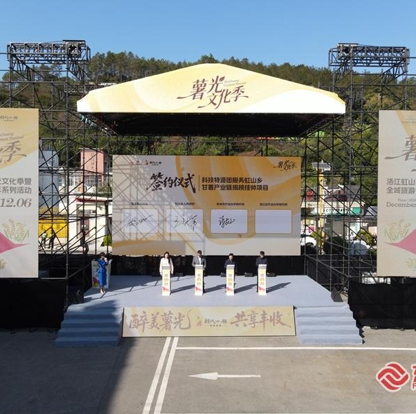 活动现场,虹山乡人民政府与泉州师范学院共建教学实践基地,并与福建省高速公路文化传媒有限公司、泉州海丝供销优品供应链管理有限公司等企业签约,推动地瓜产业与文旅深度融合。“虹山乡共富工厂项目”的启动,将为村民增收开辟新路径。