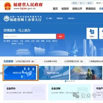 1.浏览器搜索并打开“福建省网上办事大厅”(或直接输入网址https://zwfw.fujian.gov.cn/进入),点击进入页面中的“高效办成一件事”。