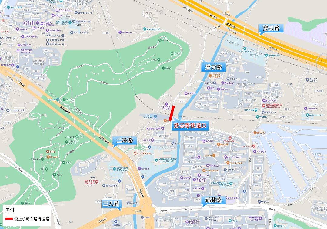 经中国铁路南昌局集团有限公司福州工务段申请,因登云路铁道口施工需要,根据《中华人民共和国道路交通安全法》第三十九条规定,决定从2025年12月9日23时至12月10日6时,对登云路铁道口实施临时交通管制,禁止机动车通行。