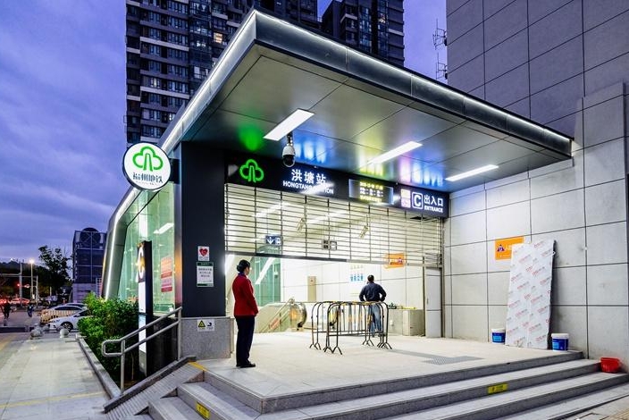 地铁洪塘站出入口。记者 陈暖 摄
