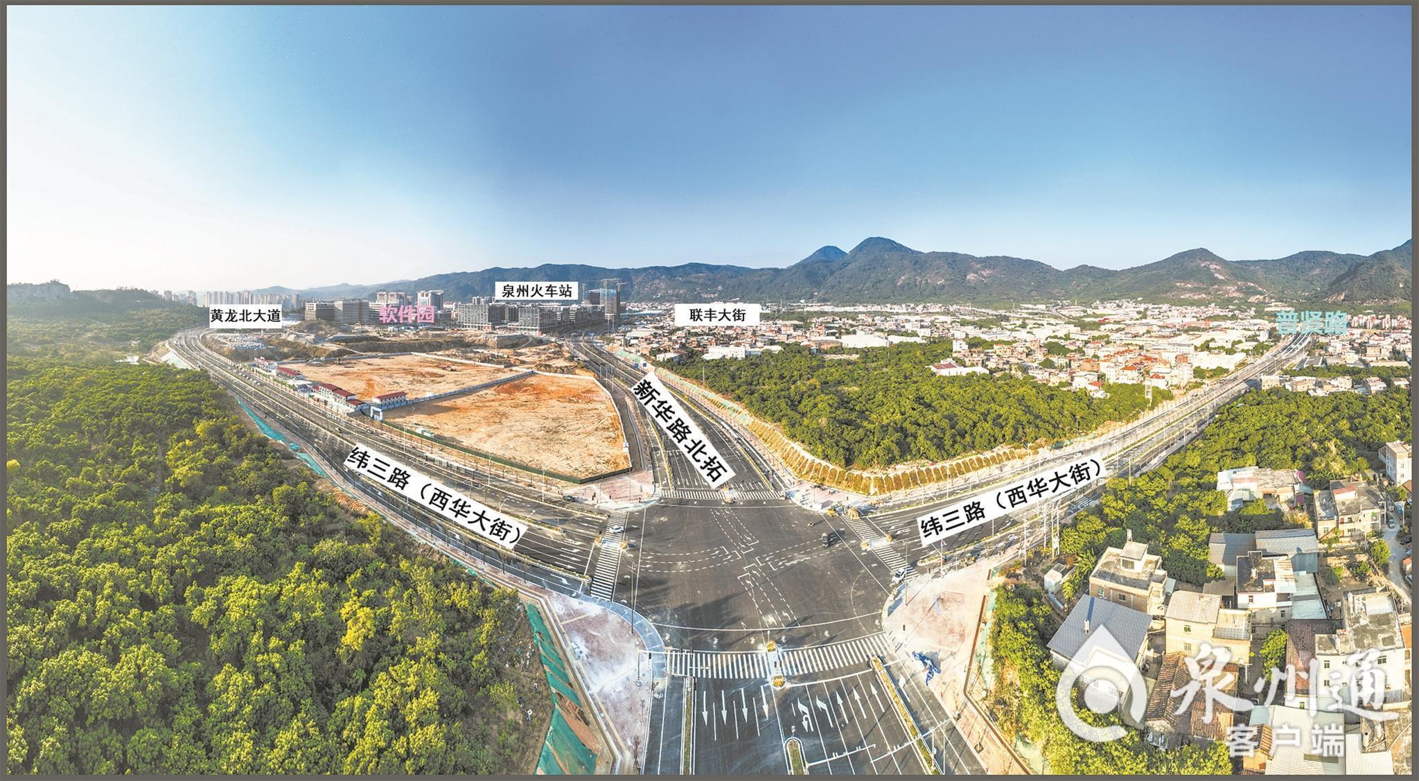 记者走访看到,新华路北拓北通泉州火车站、泉州北高速收费站两个枢纽,而纬三路(西华大街)则东依清源山,西连西华洋片区,串联黄龙北大道(原站前南北大道)与普贤路。两条路十字交叉,双向贯穿北峰片区,串联起周边联丰大街(原站前东西大道)、黄龙北大道、普贤路及北清东路,形成区域“田”字形路网。