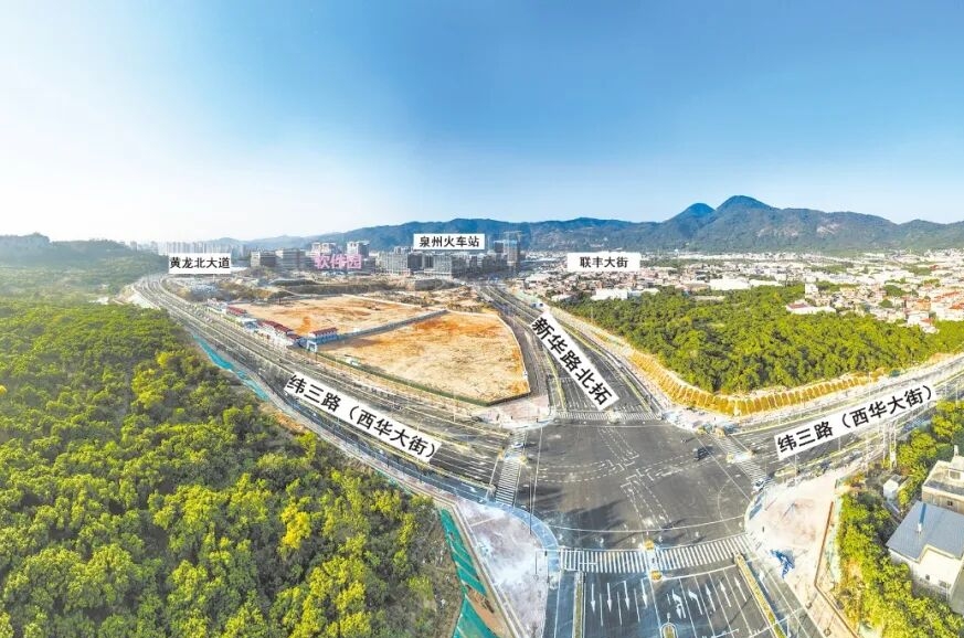 记者走访看到,新华路北拓北通泉州火车站、泉州北高速收费站两个枢纽,而纬三路(西华大街)则东依清源山,西连西华洋片区,串联黄龙北大道(原站前南北大道)与普贤路。两条路十字交叉,双向贯穿北峰片区,串联起周边联丰大街(原站前东西大道)、黄龙北大道、普贤路及北清东路,形成区域“田”字形路网。