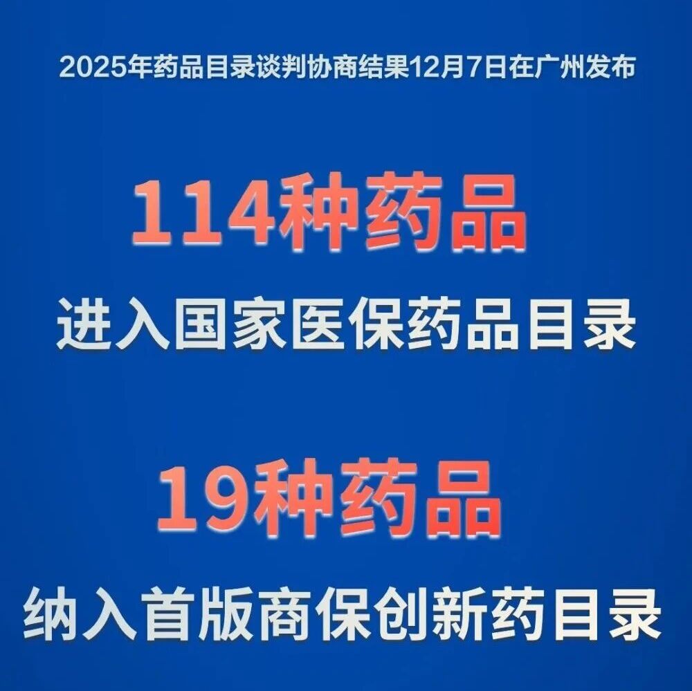 2025年国家医保药品目录及首版商保创新药目录在广东广州发布。2025年国家医保药品目录成功新增114种药品,有50种是一类创新药,总体成功率88%,较2024年的76%明显提高。19种药品纳入首版商保创新药目录。