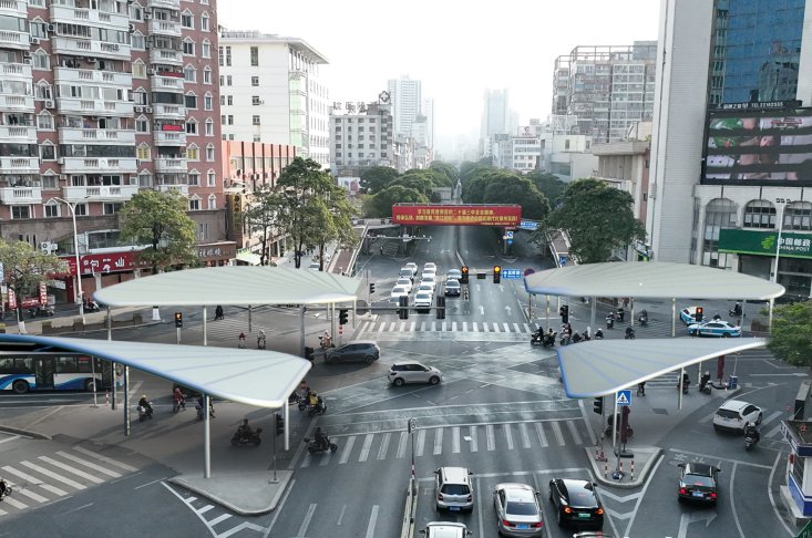 “我看这个路口设置了施工围栏,是要改造吗?”昨日,市民林女士经过泉州中心市区刺桐路与津淮街交叉路口时看到道路中间的交通岛布设了施工围栏。记者走访现场了解到,这是中心市区路口渠化岛遮阳棚建设项目,将有10个路口新建遮阳棚,目前多个路口已经启动建设。
