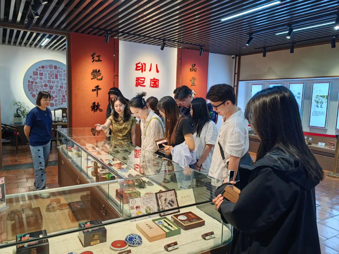 前区工坊内,工匠们现场演示印泥捶打、搅拌等核心工序,游客能近距离观摩古法技艺的精妙,感受印泥从原料甄选到成品成型的全生命周期;后区柜台里,陈列着五彩斑斓的各色印泥、创意十足的文创产品,游客可随心选购。